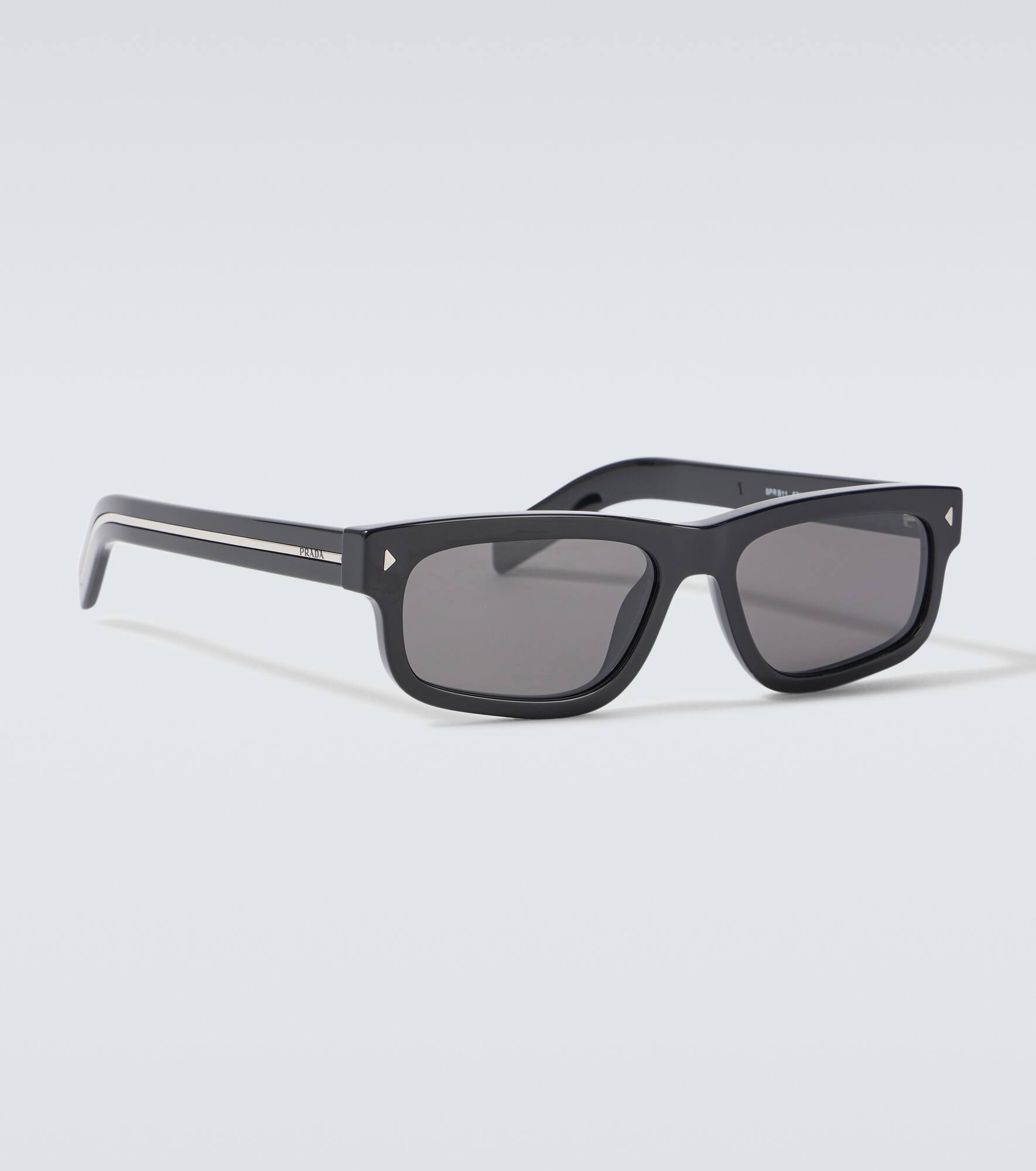 These rectangular sunglasses from Prada offer a timeless silhouette perfect to complement any sophisticated look. The design features the brand's engraved logos at the temples and comes with a logo-embossed hard case. Product Details - Frame material: acetate - Frame color: black - Lens filter category 3 - Lens color: black - Made in Italy - Includes: presentation box , logo-embossed hard case , cleaning cloth - Item number: P01041237 Size & Fit - Lens width: 40mm-1.55" - Bridge size: 12mm-0.45" - Earpiece length: 140mm-5.5"