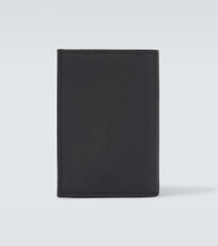 This Prada card case is crafted from crosshatched Saffiano leather, whose roots can be traced back to Mario Prada and his care for sophistication and durability. This accessory is finished with a buttoned closure and a classic triangle logo. Product Details - Material: calf leather - Lining: calf leather - Made in Italy - Designer color name: Black - Item color: black - Hardware color: silver, black - Closure: snap-buttoned fastening - Internal details: Card slots, bill slot, zipped coin pocket - Includes: box - Item number: P01083951 Size & Fit - Height 8cm-3" - Width 11,5cm-4.5" - Depth 3cm-1"