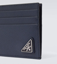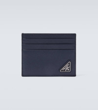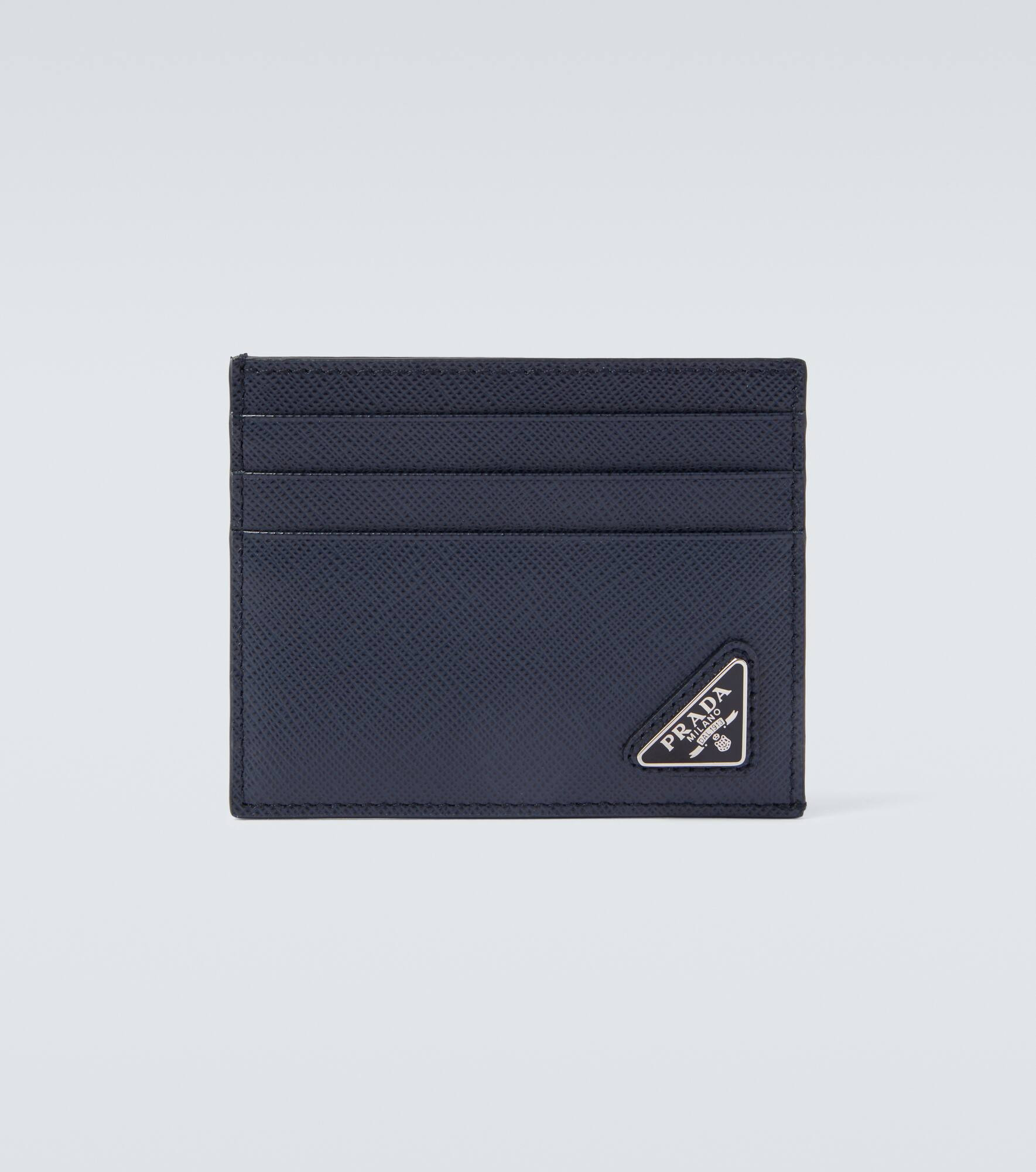Showcasing meticulous craftsmanship, this card holder from Prada is made from the brand's signature Saffiano leather. The design is complete with multiple slots and iconic triangle logo detailing. Product Details - Material: leather - Lining: leather, fabric - Made in Italy - Designer color name: Blue - Item color: blue - Internal details: Card slots - Item number: P01083941 Size & Fit - Height 8cm-3" - Width 10cm-4"
