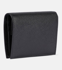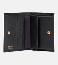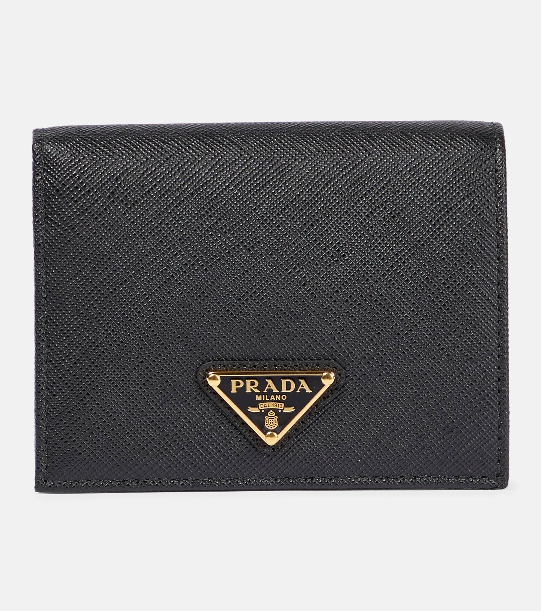 Prada aficionados will treasure this wallet, which comes accented with the house's iconic triangular logo plaque. Made from hatched saffiano leather, it features four card slots, a note compartment and press-stud coin pocket. Product Details - Material: calf leather - Internal details: Card slots, fabric lining, snap-buttoned coin pocket - Color of fastening: gold - Closure: snap-buttoned fastening - Comes with a box - Made in Italy - Item number: P00630315 Size & Fit - Height 8,5cm-3.5" - Width 11,5cm-4.5" - Depth 3,5cm-1.5"