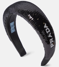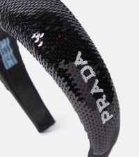 Prada makes festive accessorizing easy and effortless with this sparkling headband. It's made in Italy and fully adorned with sequins that include logo lettering. Product Details - Material: fabric - Made in Italy - Item number: P00627899 Size & Fit - Max. width 4,3cm-1.5"