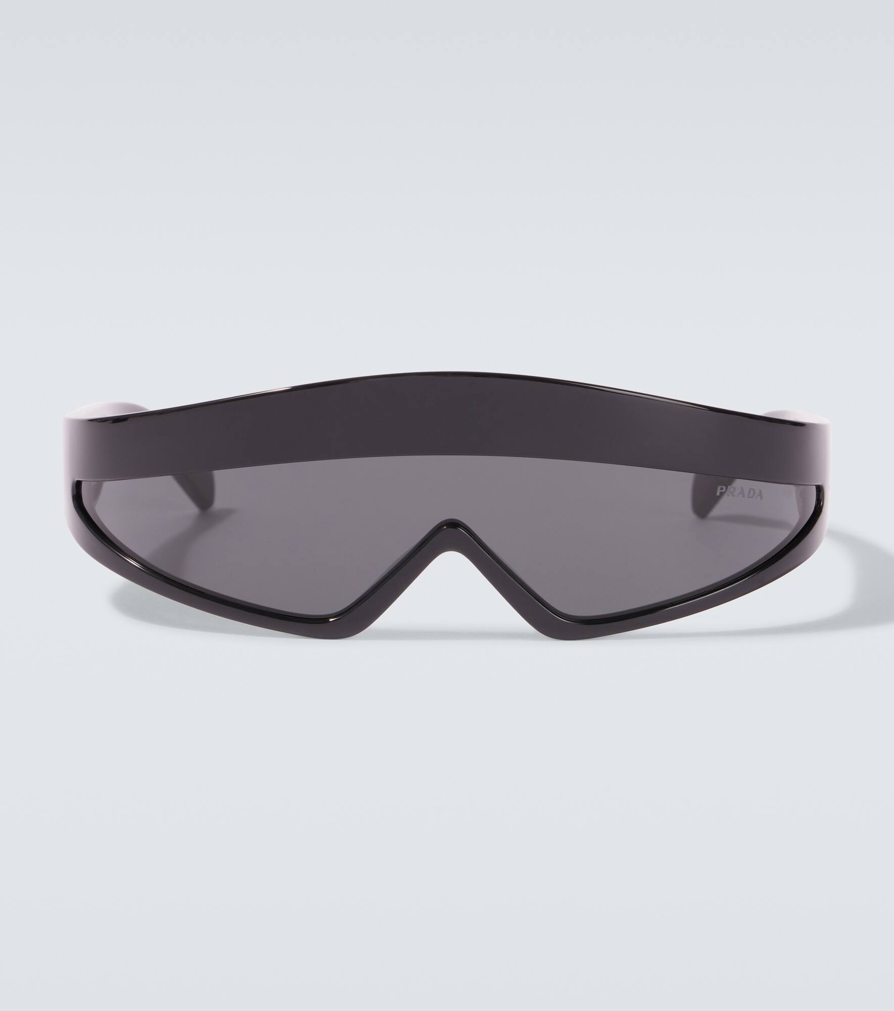Prada takes Italian heritage into a distinctly modern direction with a streamlined and fashion-forward approach. An emblem of this attitude, these shield sunglasses are meticulously crafted from acetate and complete with silver-toned logo lettering at the temples. Product Details - Frame material: acetate - Frame color: black - Lens filter category 2 - Lens color: grey - Made in Italy - Includes: hard case, cleaning cloth - The color of the case may vary - Item number: P01041238 Size & Fit - Lens width: 30mm-1.2" - Bridge size: 18mm-0.7" - Earpiece length: 130mm-5.1"