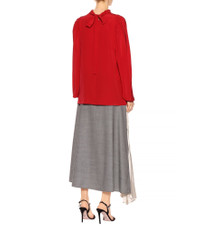 Prada's bright red top allows you to leave a lasting impression, thanks to the carefully constructed back-detailing. Crafted in Italy from lightweight crepe de chine, the front features a subtle cowl collar and gathers at the cuff. The neckline ties at the back with a single button and an-ultra feminine bow that frames a keyhole-shaped cut-out. Tuck yours into a high-waisted pencil skirt for a workwear look that shows the world that you're the boss. Product Details - Material: 100% silk - Care instructions: dry clean - Made in Italy - Designer color name: Rosso - Self-tie neck - Closure: buttoned back - Item number: P00335321 Size & Fit - True to size - Designed for a loose fit - Falls below the hip - The model seen in the picture is 178cm-5'10" and wearing a size IT 40