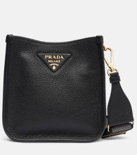 Prada takes Italian heritage into a distinctly modern direction with a streamlined and fashion-forward approach. Arriving in Mini proportions, this shoulder bag is made from black leather and comes with two detachable, adjustable straps – one made from tonal leather, and the other woven with the brand's logo. Product Details - Material: leather - Lining: leather, fabric - Made in Italy - Designer color name: Black - Item color: black - Detachable, adjustable shoulder strap, Leather shoulder strap - Internal details: internal slot pocket - Closure: magnetic fastening - Item number: P01083900 Size & Fit - Height 19cm-7.5" - Width 19cm-7.5" - Depth 5cm-2" - Adjustable shoulder strap - Max. length shoulder strap 118cm-46.5"
