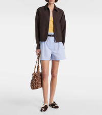 Prada’s mohair and silk blouson is a lightweight style that’s sure to become a feautre of your forever wardrobe. It has a two-way zip front and an elasticated back hem with the and a fabric Prada triangle on the back collar. Product Details - Material: 60% mohair, 40% wool - Care instructions: hand wash - Made in Italy - Designer color name: Cacao - Item color: brown - Elasticated waistband - Closure: zipped front - Hardware color: silver - Pockets: slit pockets - Item number: P01058082 Size & Fit - True to size - Dropped shoulders - Loose fit, elasticated waist - Non-stretchy fabric - Slightly cropped - The model seen in the picture is 178cm-5'10" and wearing a size IT 40