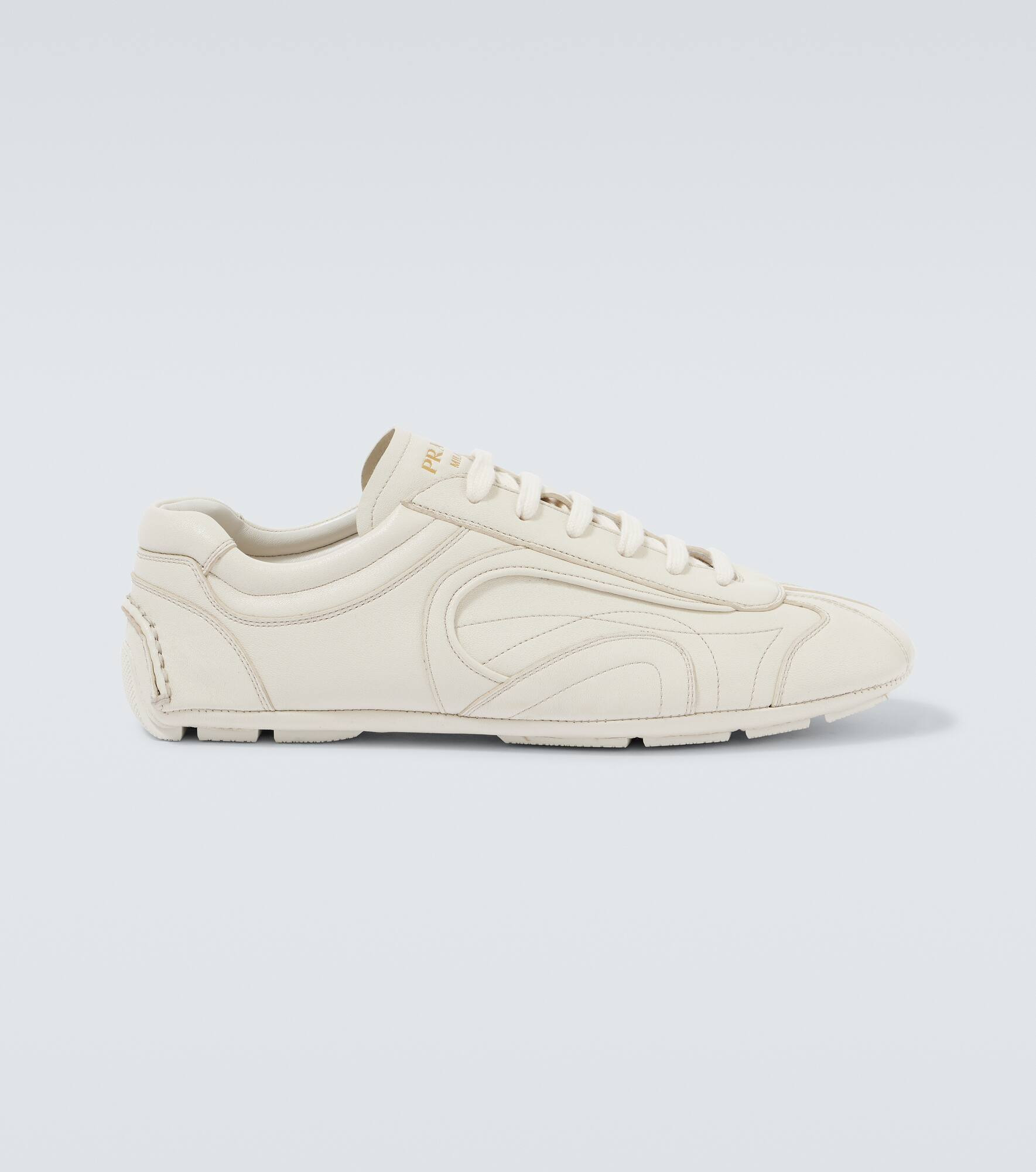 Prada takes Italian heritage into a distinctly modern direction with a streamlined and fashion-forward approach. Crafted from supple leather, the Montecarlo Re-Edition 2005 sneakers feature sporty and sleek silhouettes with high-frequency printed logos on the uppers. Product Details - Upper: leather (nappa) - Lining: leather - Sole: leather insole, leather and rubber sole - Toe shape: square toe - Made in Italy - Includes: shoe box - Designer color name: Talco - Item color: white - Item number: P01060842 Size & Fit - True to size - UK sizes