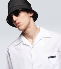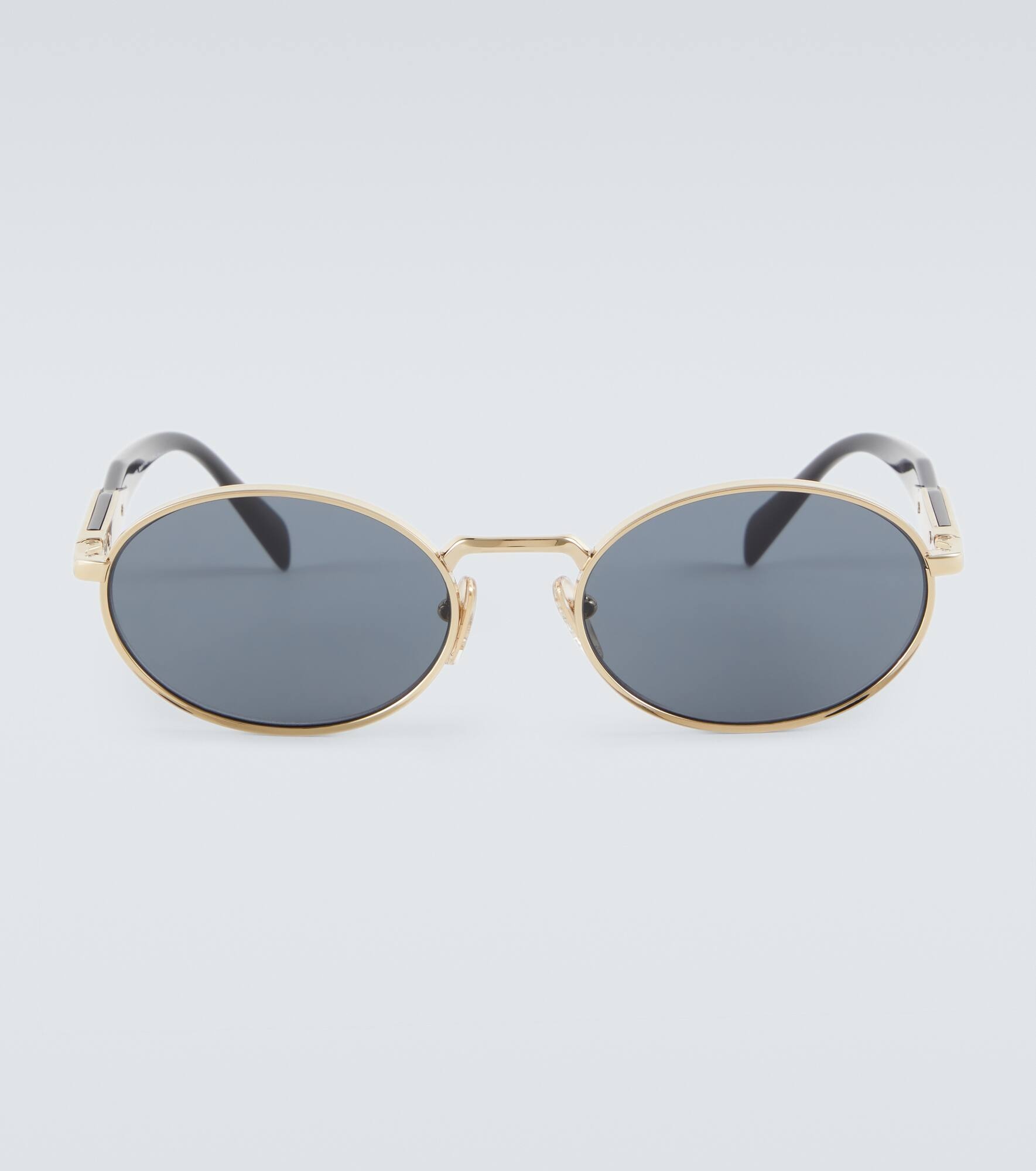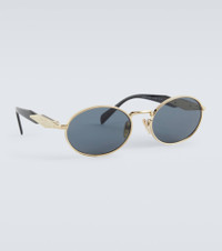 Prada's affinity for streamlined proportions is spotlighted by these oval sunglasses. Appearing with gold-tone frames and black-tinted UV-protective lenses, this style has engraved logo temples. Product Details - comes with a presentation box , comes with cleaning cloth, comes in a hard case - Frame material: acetate - Made in Italy - Lens filter category 3 - Lens color: black - Frame color: gold - Designer color name: 0 - Item number: P00818563 Size & Fit - Lens width: 55mm-2.15" - Bridge size: 20mm-0.8" - Earpiece length: 140mm-5.5"