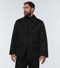 Offering a single-breasted fit, Prada designs this double-faced cashmere blazer with a smooth partial lining. The slightly oversized, boxy design features dropped shoulders and two-buttoned fastening. Product Details - Material: 100% cashmere - Made in Italy - Filling: 100% polyester - Designer color name: Nero - Lining: 100% viscose, fully lined - Pockets: flap pockets, internal pockets - Closure: buttoned front - Care instructions: dry clean - Item number: P00748832 Size & Fit - True to size - Oversized - Thick material - Falls below the hip - The model in the picture is 185cm-6'1" and wearing a size IT 48
