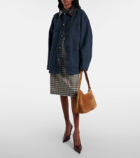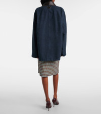 Master transeasonal dressing with this Prada jacket. A timeless design with modern accents, the piece features an oversized silhouette made entirely from cotton and trimmed at the collar with leather. Product Details - Material: 100% cotton - Care instructions: specialist clean - Made in Italy - Designer color name: Bleu - Item color: blue - Details: 100% goat leather - Contains non-textile parts of animal origin - Closure: buttoned front - Pockets: patch, buttoned pocket - Item number: P01061959 Size & Fit - True to size - For a closer fit, we recommend taking one size down - Dropped shoulders - Oversized - Non-stretchy fabric - Falls below the hip - The model seen in the picture is 178cm-5'10" and wearing a size IT 40