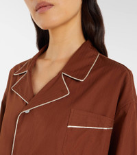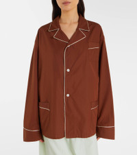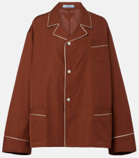 Prada takes Italian heritage into a distinctly modern direction with a streamlined and fashion-forward approach. Made from cotton, this shirt is cut to an oversized, minimalist silhouette and features multiple pockets and button fastenings. Product Details - Material: 100% cotton - Care instructions: dry clean - Made in Italy - Designer color name: Tabacco - Item color: brown, white - Contains non-textile parts of animal origin - Closure: buttoned front - Pockets: patch pockets, rounded chest pocket - Item number: P01110572 Size & Fit - True to size - Dropped shoulders - Oversized - Non-stretchy fabric - Falls below the hip - Height of model is 178cm-70" and wears a size IT 40