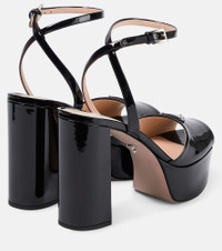 These platform sandals from Prada will add elegance and elevation to your outfit. Made in Italy out of leather, this design has a square toe and features metallic Triangolo logo embellishments. Product Details - Upper: leather - Lining: leather - Sole: leather insole and sole - Toe shape: square open toe - Made in Italy - Includes: shoe box - Designer color name: Nero - Closure: buckle-fastening ankle strap - Hardware color: silver - Item number: P00772208 Size & Fit - True to size - European sizes - 12,5cm-5" heel (size EU 38) - 4cm-1.5" platform (size EU 38)