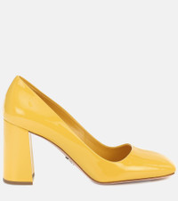 The forecast is sunny when sporting these vibrant yellow pumps from Prada. Crafted in Italy from lustrous patent leather, they offer a modern square toe and an 85mm block heel. Let yours make a strong base for tailoring and floaty dresses alike. Product Details - Lining: leather - Toe shape: square toe - Upper: calf leather - Sole: leather insole, leather and rubber sole - Made in Italy - Designer color name: Girasole - Item number: P00435490 Size & Fit - True to size - Slightly narrow at the toe - Slightly wide at the heel - European sizes - 8,5cm-3.5" heel (size EU 38)