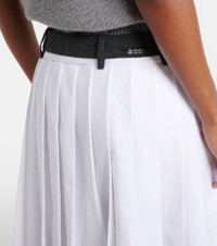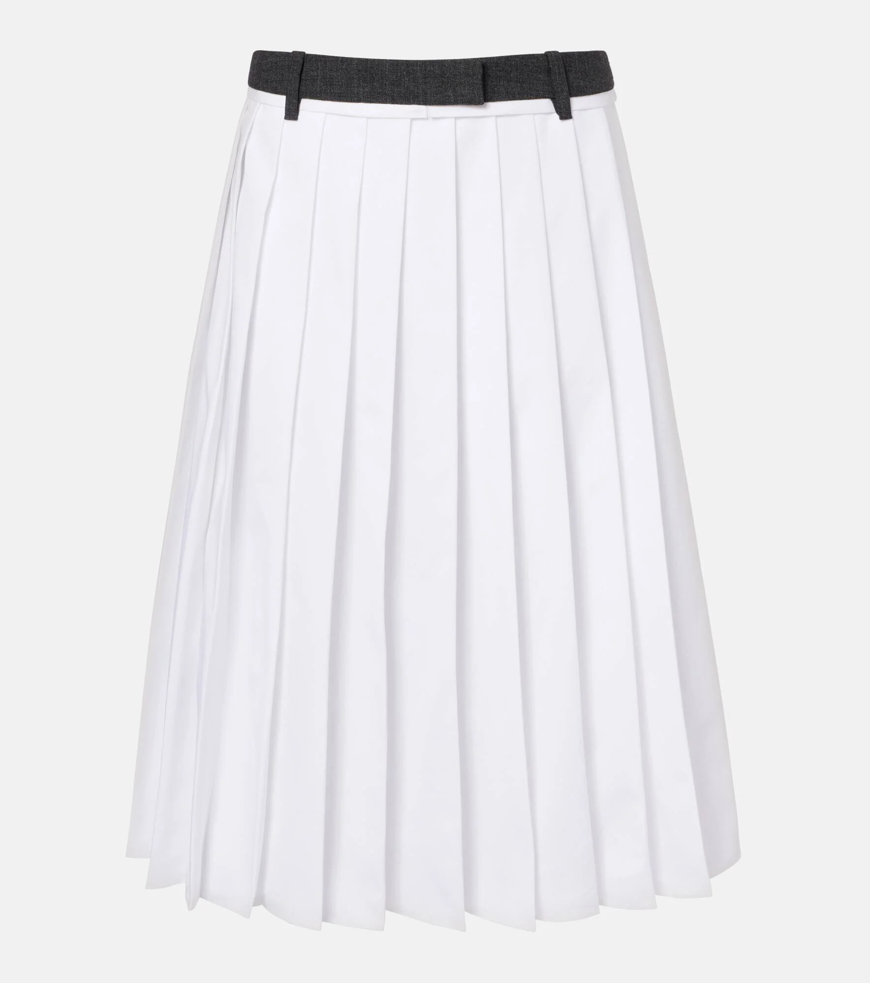 Prada has been synonymous with cutting-edge style since 1913. Inspired by classic tennis styles, this midi skirt is crafted from pure cotton and features a pleated silhouette and contrast trims. Product Details - Material: 100% cotton - Care instructions: dry clean - Made in Italy - Color: white - Designer color name: Bianco - Closure: hook-fastening front, concealed zipped side - Belt loops - Item number: P01154878 Size & Fit - True to size - Non-stretchy fabric - Sits low on the hips - The model seen in the picture is 178cm-5'10" and wearing a size IT 40