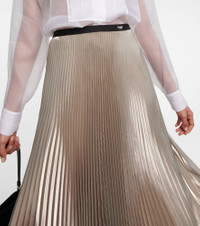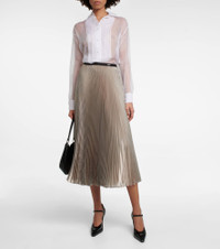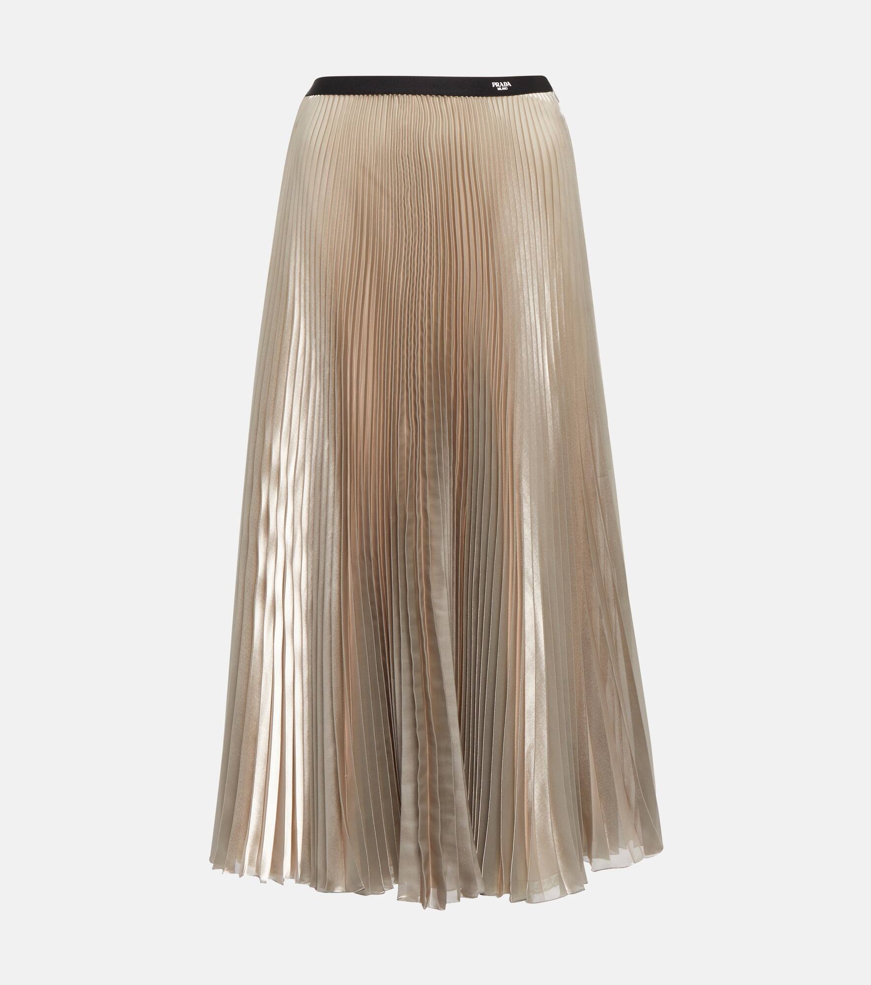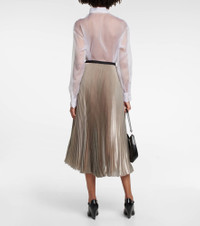 Pleated metallic voile midi skirt