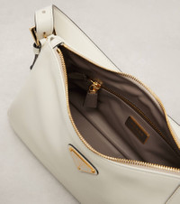 Prada takes Italian heritage into a distinctly modern direction with a streamlined and fashion-forward approach. The Prada Aimee Medium shoulder bag is crafted from leather into a softly structured silhouette with signature logo hardware. Product Details - Material: calf leather - Lining: leather - Made in Italy - Designer color name: White - Item color: white - Hardware color: gold - Detachable, adjustable shoulder strap - Internal details: internal zipped pocket, internal slot pocket, single compartment - Closure: zipped top - Detachable charm - Item number: P01101419 Size & Fit - Height 14cm-5.5" - Width 32cm-12.5" - Depth 8,5cm-3.5" - Length of handles 55cm-21.5"
