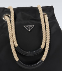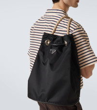 Crafted in Prada's signature Re-Nylon material, the Mariner Medium tote bag features a spacious silhouette with sliding woven leather-trimmed handles. The nautical-inspired design is complete with the brand's enameled metal triangle logo. Product Details - Material: fabric - Lining: fabric - Made in Italy - Designer color name: Nero - Item color: black - Internal details: single compartment, internal zipped pocket - Shoulder straps - Hardware color: silver - Item number: P01060645 Size & Fit - Height 44cm-17.5" - Width 34cm-13.5" - Depth 23cm-9" - Length of handles 64cm-25" - Length shoulder strap 120cm-47"