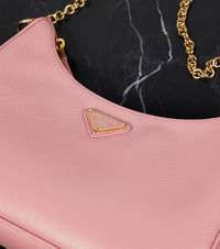 The Re-Edition 2005 shoulder bag from Prada is made in Italy from pink-hued leather. As its name suggests, this style is one that has withstood the test of time. Product Details - Closure: zipped top - Detachable, adjustable shoulder strap - Designer color name: Petalo 1 - Internal details: fabric lining - Made in Italy - Comes with dust bag - Material: leather - Item number: P00754613 Size & Fit - Width 22,5cm-9" - Min. height 13cm-5" - Depth 6,5cm-2.5" - Pendant width %mm%mm-2.5" - Pendant length 9,5cm-3.5" - Min. length shoulder strap 76cm-30" - Max. length shoulder strap 108cm-42.5"