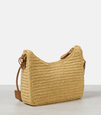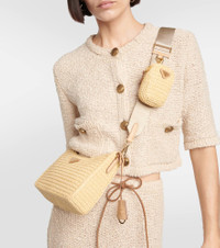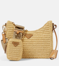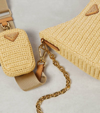 This small shoulder bag reprises Prada's archival 2005 design in beige raffia. It has an assortment of detachable pieces – a chain strap, a web strap, a zip pouch and a logo keychain – that make it an adaptable piece suited to your daily-changing needs. Product Details - Material: raffia - Lining: fabric - Made in Italy - Designer color name: Naturale - Item color: beige - Trim: calf leather - Closure: zipped top - Zipped front pocket - Color of fastening: gold - Detachable, adjustable shoulder strap - Includes: dust bag - Hardware color: gold - Item number: P00588974 Size & Fit - Height 13cm-5" - Width 22,5cm-9" - Depth 6,5cm-2.5" - Pendant length 9,5cm-3.5" - Pendant width 6,5cm-2.5" - Min. length shoulder strap 76cm-30" - Max. length shoulder strap 108cm-42.5"