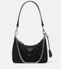 Product Details - Material: fabric - Lining: fabric - Made in Italy - Designer color name: Nero - Closure: zipped top - Includes: box, dust bag - Detachable chain shoulder strap - Hardware color: silver - Item number: P01027836 Size & Fit - Width 22cm-8.5" - Min. height 11,5cm-4.5" - Max. height 16,5cm-6.5" - Max. depth 6cm-2.5" - Chain length 44cm-17.5" - Min. length shoulder strap 51cm-20" - Max. length shoulder strap 87cm-34.5"