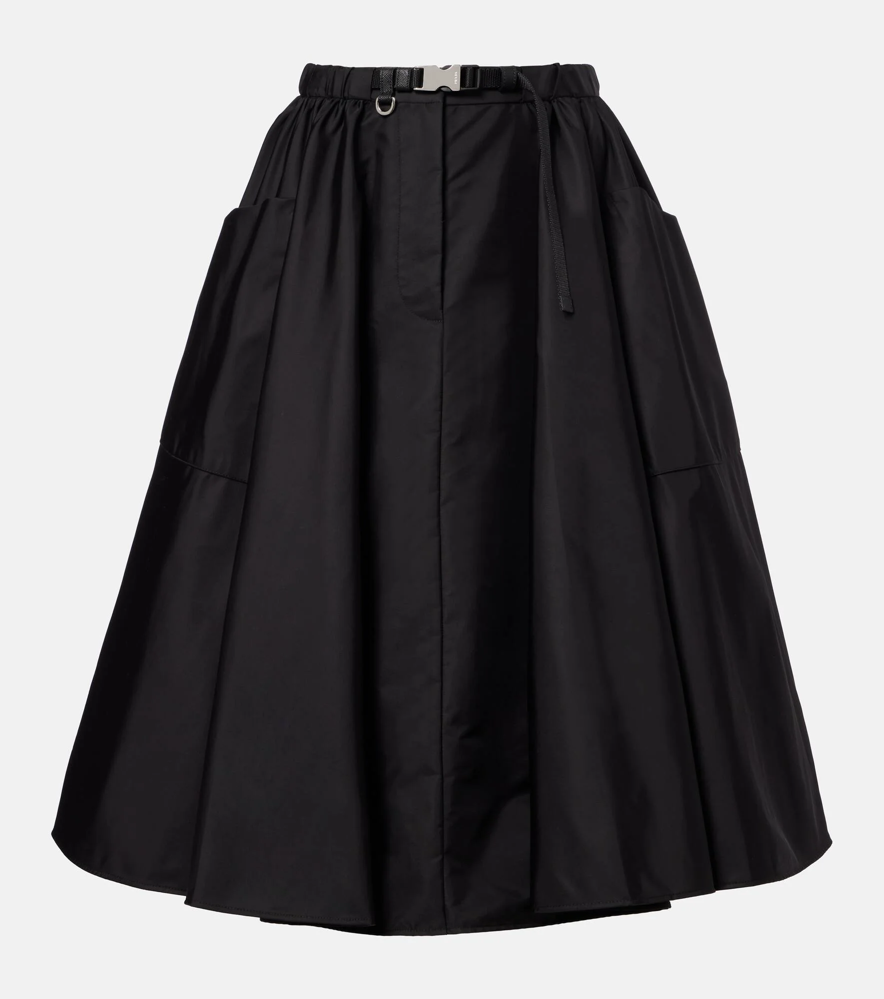 Offering a sustainable take on a signature fabric, Prada’s Re-Nylon products are made from regenerated ocean plastic waste. This midi skirt is crafted from the distinctive material and features two cargo pockets and an adjustable buckle belt at the waist. Product Details - Material: 100% polyamide (recycled) - Care instructions: machine wash at 30 degrees - Made in Italy - Color: black - Designer color name: Black - Material II: 100% polyamide - Details: 100% calf leather - Contains non-textile parts of animal origin - Hardware color: silver - Attached belt - Pockets: cargo pockets - Closure: zipper fastening - Item number: P01152952 Size & Fit - True to size - Adjustable at the waist - Non-stretchy fabric - High-waisted - The model seen in the picture is 178cm-5'10" and wearing a size IT 40