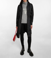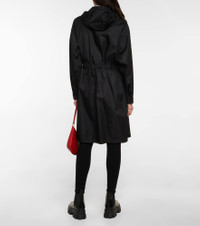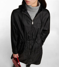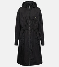 Fashion fuses with technical innovation in this long black Prada coat, which is crafted from nylon. The slick hooded style has an adjustable drawstring waist and is accented with the iconic triangular emblem. Product Details - Material: 100% polyamide - Care instructions: machine wash at 30 degrees - Made in Italy - Designer color name: Nero - Closure: self-ties, two-way zipped fastening - Elasticated waistband - Pockets: breast pocket, slit pockets - Drawstring hood - Buttoned cuffs - Item number: P00695277 Size & Fit - True to size - Dropped shoulders - Loose fit, drawstring waist - The model seen in the picture is 178cm-5'10" and wearing a size IT 40