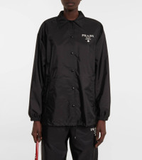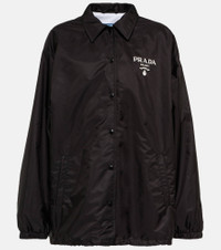 Prada repurposes house-signature nylon to create staples like this jacket. Featuring a logo print at the heart, the collared design has side-slit pockets and a toweling lining. Product Details - Made in Italy - Drawstring at the hem for adjustable fit - Closure: snap-buttoned front - Designer color name: Nero - Elasticated cuffs - Lining: 82% cotton, 18% polyamide, fully lined - Material: 100% polyamide (recycled) - Pockets: side slit pockets - Care instructions: dry clean - Item number: P00635352 Size & Fit - True to size - Dropped shoulders - Adjustable hem - Oversized - Falls below the hip - The model seen in the picture is 178cm-5'10" and wearing a size IT 40