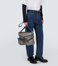 Product Details - Material: fabric - Lining: fabric - Made in Italy - Designer color name: Ferro - Closure: zipped top, buckle fastening - Zipped front pocket - Shoulder strap - Item number: P00897418 Size & Fit - Height 24cm-9.5" - Width 30cm-12" - Max. depth 15cm-6" - Min. length shoulder strap 65cm-25.5" - Max. length shoulder strap 119cm-47"