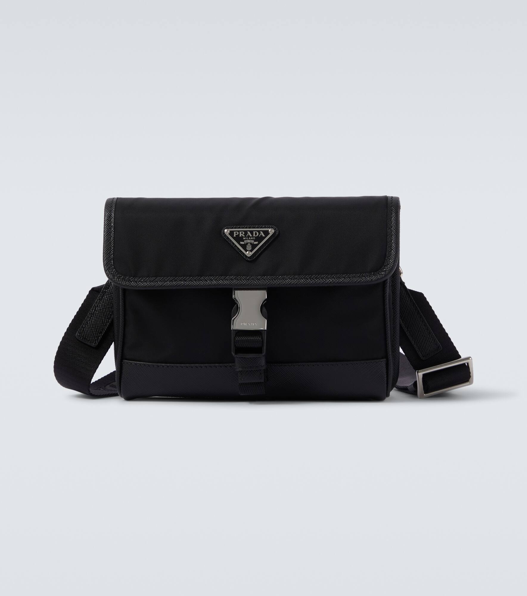 Prada’s Re-Nylon products are made from regenerated ocean plastic waste. This shoulder bag has a slim and square silhouette accented with the brand's signature crosshatched Saffiano leather trims. Product Details - Material: nylon, leather - Lining: nylon - Made in Italy - Designer color name: Black - Item color: black - Closure: buckle fastening - Internal details: card slot - Includes: box - Detachable, adjustable shoulder strap - Item number: P01075988 Size & Fit - Height 13cm-5" - Width 17,5cm-7" - Depth 3cm-1" - Min. length shoulder strap 80cm-31.5" - Max. length shoulder strap 141cm-55.5"