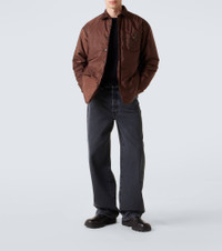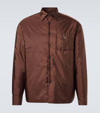 Offering a more sustainable take on a signature fabric, Prada’s Re-Nylon products are made from regenerated ocean plastic waste. This padded shirt is designed with a shiny finish and finished with the brand's unmistakable triangle logo. Product Details - Material: 100% polyamide (recycled) - Care instructions: hand wash - Made in Romania - Designer color name: Brown - Item color: brown - Filling: 55% polyester (recycled), 45% polyester - Lining: 100% polyamide (recycled) - Contains non-textile parts of animal origin - Closure: buttoned placket - Cuff: buttoned - Collar: classic (Straight point) - Pockets: angled chest pocket - Item number: P01110552 Size & Fit - True to size - With pleats in the back - Classic fit - Non-stretchy fabric - Falls below the hip - The model in the picture is 185cm-6'1" and wearing a size L
