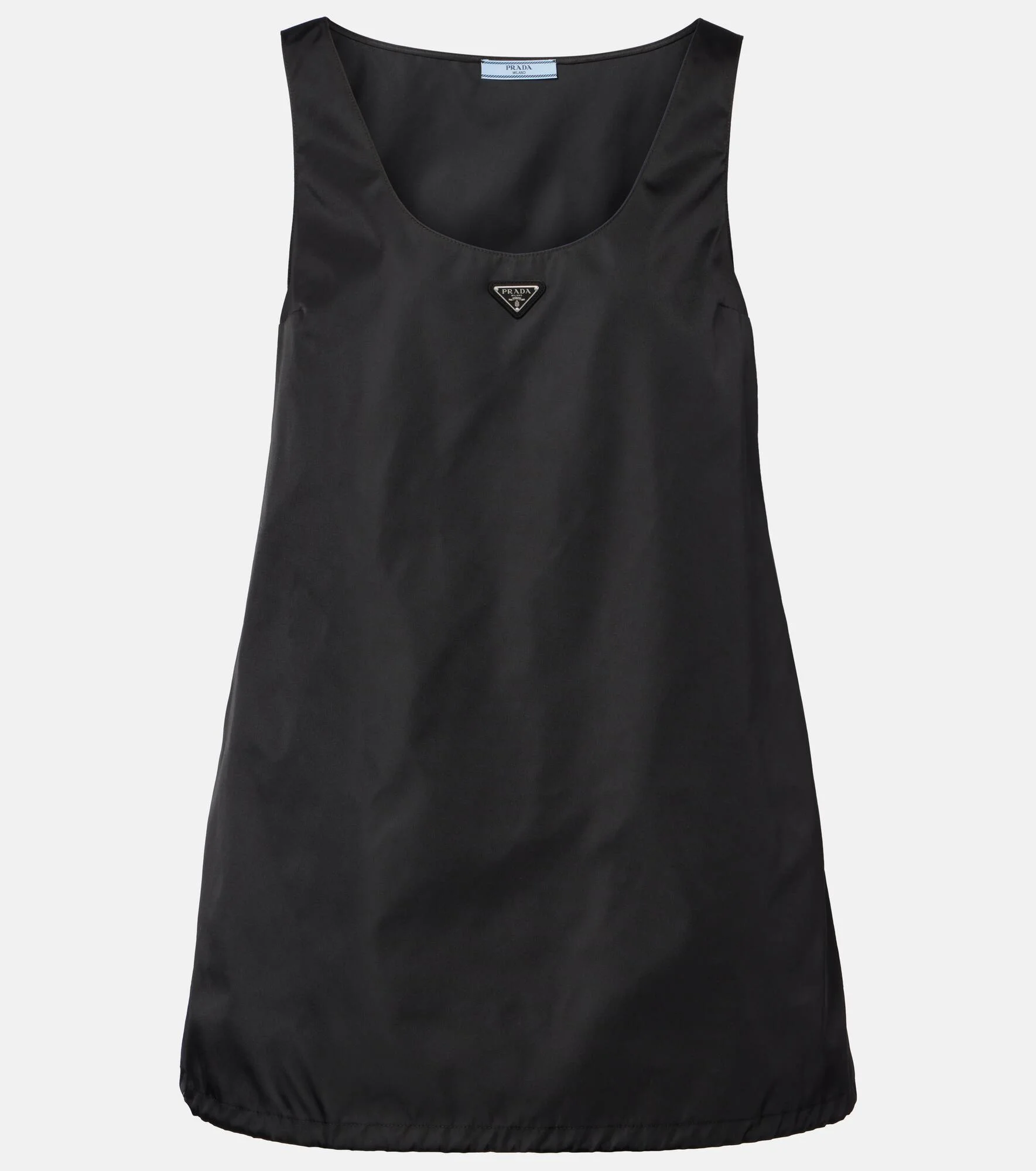 This Re-Nylon minidress features a scoop neckline, logo hardware, and drawstring hem. Offering a more sustainable take on a signature fabric, Prada’s Re-Nylon products are made from regenerated ocean plastic waste. Product Details - Material: 100% polyamide (recycled) - Care instructions: machine wash at 30 degrees - Made in Italy - Designer color name: Black - Item color: black - Contains non-textile parts of animal origin - Details: 100% calf leather - Pockets: side slit pockets - Item number: P01117246 Size & Fit - True to size - Designed for a loose fit - Adjustable hem - Elasticated hem - Non-stretchy fabric - The model seen in the picture is 178cm-5'10" and wearing a size IT 40