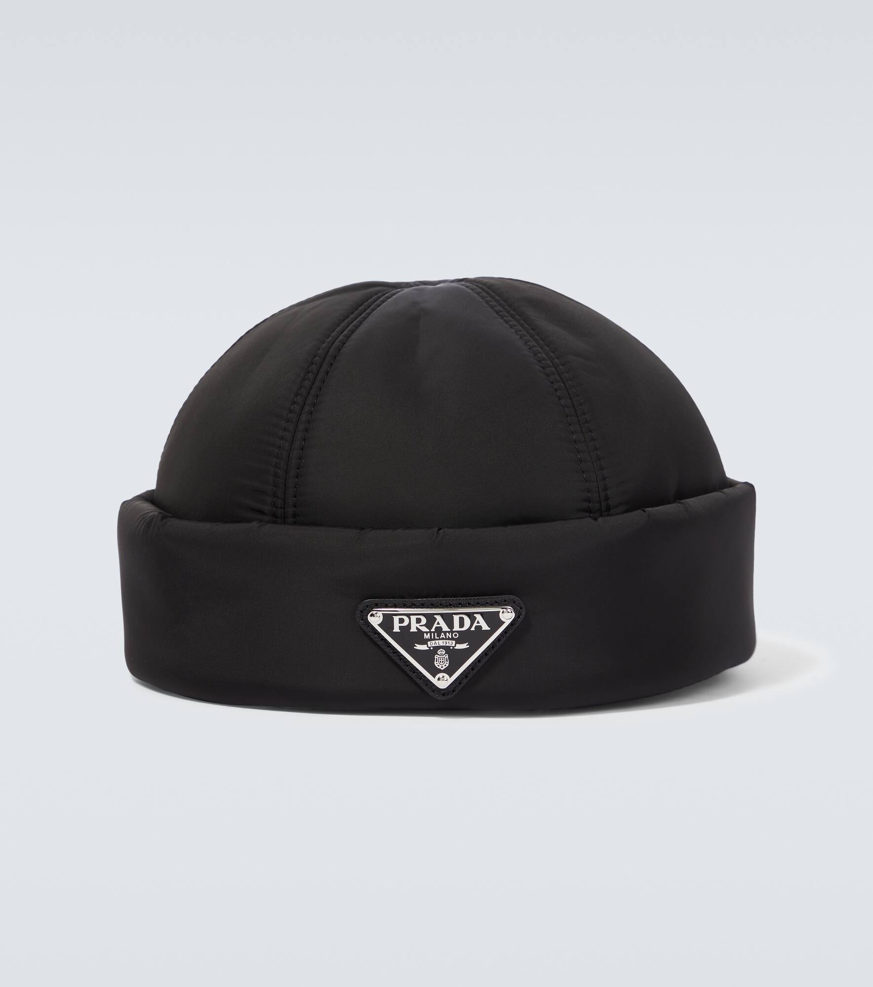 Offering a more sustainable take on a signature fabric, Prada’s Re-Nylon products are made from regenerated ocean plastic waste. This beanie features a docker-inspired shape, with a padded interior for comfort and a logo plaque. Product Details - Material: 100% polyamide (recycled) - Lining: 100% viscose - Care instructions: machine wash at 30 degrees - Made in Italy - Contains non-textile parts of animal origin - Item number: P00817248 Size & Fit - Circumference size S 57cm-22.5" - Circumference size M 58cm-23" - Circumference size L 59cm-23"
