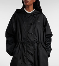 Offering a sustainable take on a signature fabric, Prada’s Re-Nylon products are made from regenerated ocean plastic waste. This raincoat is designed with a buttoned front and a drawstring at the waist and hem to adjust the silhouette. Product Details - Material: 100% polyamide (recycled) - Care instructions: machine wash at 30 degrees - Made in Romania - Designer color name: Nero - Item color: black - Details: 100% calf leather - Contains non-textile parts of animal origin - Elasticated hood - Cuff: elasticated - Pockets: side slit pockets - Closure: buttoned front - Drawstring at the hem for adjustable fit - Item number: P01061964 Size & Fit - True to size - Designed for an extremely oversized fit - Dropped shoulders - Loose fit, drawstring waist - Non-stretchy fabric - The model seen in the picture is 178cm-5'10" and wearing a size IT 40