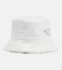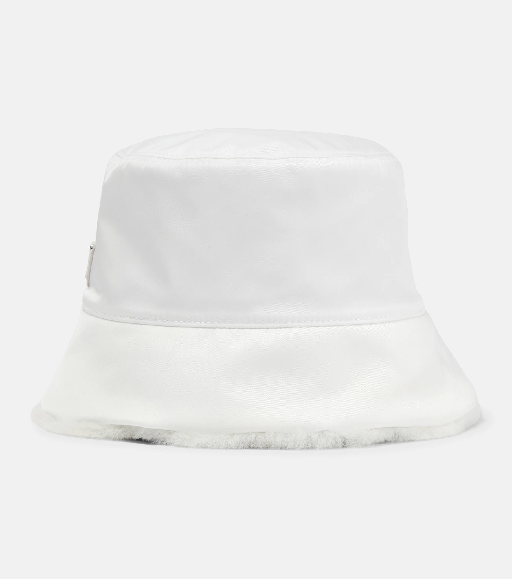 Top off your cold-weather looks with this shearling-lined bucket hat from Prada. The style is made from white nylon and features the brand's triangular logo plaque. Product Details - Material: 100% polyamide - Care instructions: dry clean - Made in Italy - Designer color name: White - Lining: 100% shearling - Item number: P00744960 Size & Fit - Circumference size M 58cm-23" - Width of brim 6cm-2.5"