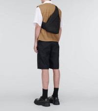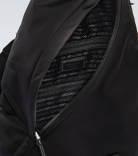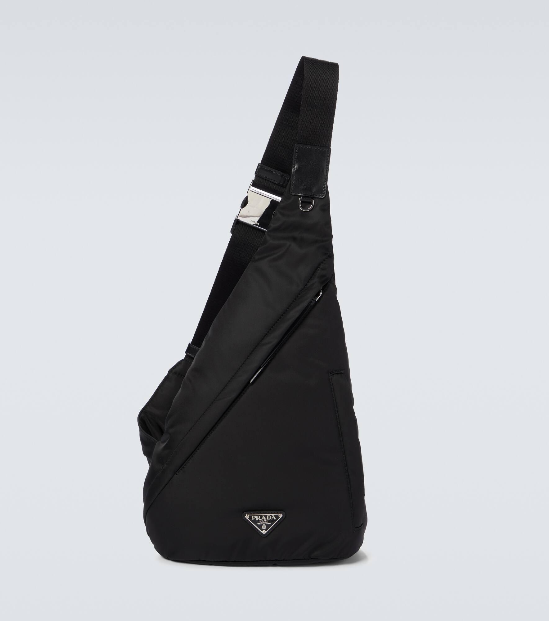 Crafted from the label's sustainable Re-Nylon fabric, this Prada bag can be worn across the shoulder, has a zipped fastening, and is detailed with the famed triangle enamel logo. Product Details - Trim: calf leather - Closure: zipped top - Designer color name: Nero - Material: fabric - Internal details: fabric lining, internal zipped pocket - Made in Italy - Color of fastening: black - Adjustable shoulder strap - Item number: P00581392 Size & Fit - Height 40cm-15.5" - Min. width 12cm-4.5" - Max. width 26cm-10" - Depth 11cm-4.5" - Min. length shoulder strap 73cm-28.5" - Max. length shoulder strap 103cm-40.5"