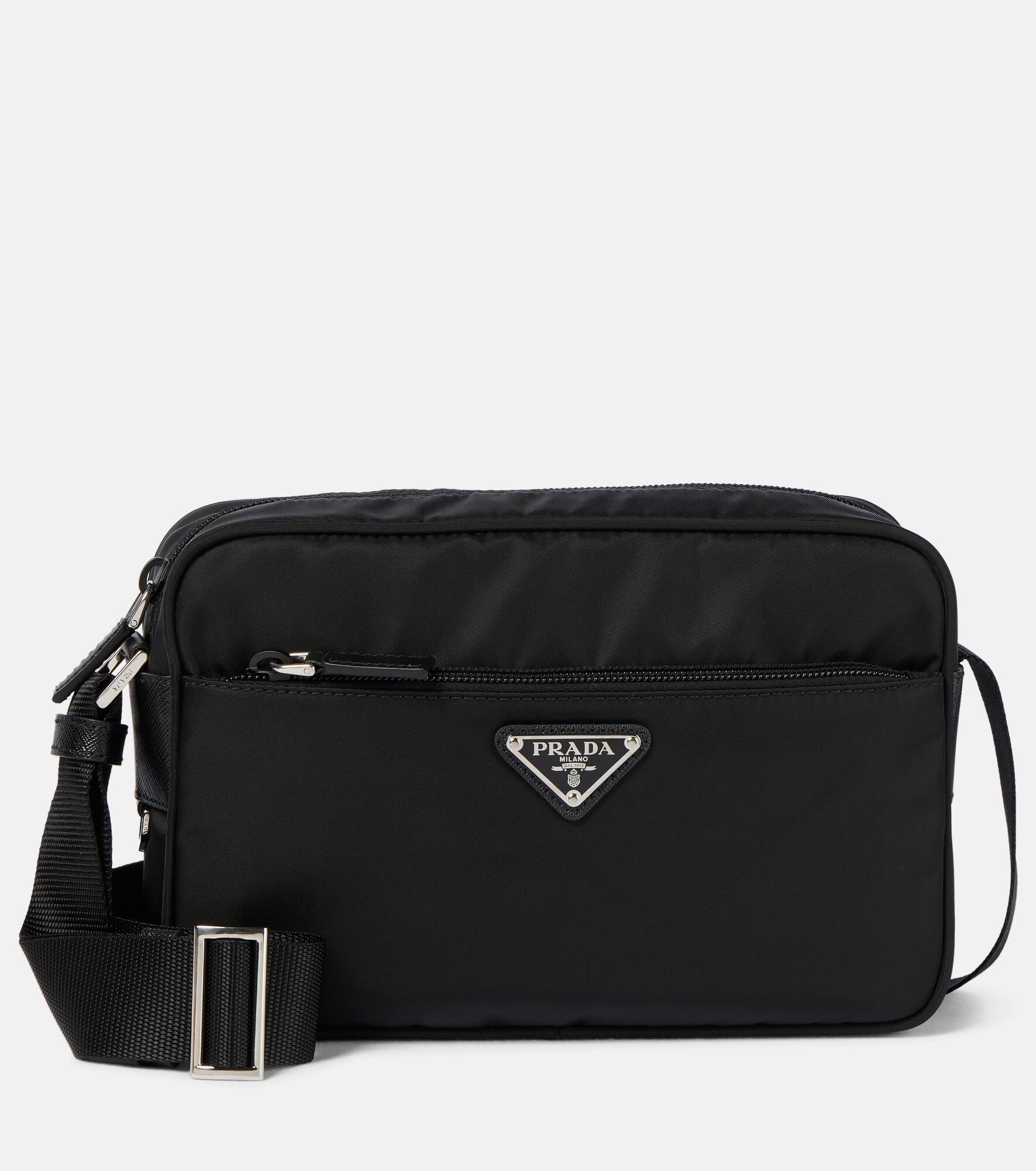 Consider this practical Prada shoulder bag a trusty everyday companion. Made from black nylon, its compact size is compartmentalized for optimal organization. The triangular logo plaque will lend instant recognition on every outing. Product Details - Material: fabric - Lining: fabric - Made in Italy - Designer color name: Nero - Trim: calf leather - Internal details: internal zipped pocket, fabric lining - Zipped front pocket - Color of fastening: silver - Adjustable shoulder strap - Closure: zipped top - Includes: box, dust bag - Item number: P00589246 Size & Fit - Height 16cm-6.5" - Width 23cm-9" - Depth 7cm-3" - Adjustable shoulder strap - Min. length shoulder strap 75cm-29.5" - Max. length shoulder strap 143cm-56.5"