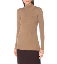 Elevate your everyday edit with this dark beige sweater from Prada. Made in Italy, it's spun from a stretch-wool blend to a slim fit that flatters the natural contours of the body. It looks as sophisticated paired with the label's tailoring as it does with their trackpants. Product Details - Material: 85% wool, 13% polyamide, 2% elastane - Care instructions: dry clean - Made in Italy - Designer color name: Camel - Item number: P00495817 Size & Fit - True to size - Fitted - Falls below the hip - The model seen in the picture is 178cm-5'10" and wearing a size IT 40