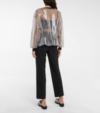 Catch the light in this iridescent cardigan from Prada. The sequined design features a discreet logo patch at the chest and maintains an athleisure feel with contrasting trims and a boxy silhouette. Product Details - Made in Italy - Material: 100% polyamide - Closure: buttoned front - Designer color name: Argento - Care instructions: dry clean - Elasticated cuffs - Elasticated waistband - Item number: P00623559 Size & Fit - True to size - For a closer fit, we recommend taking one size down - Dropped shoulders - Sheer - Elasticated hem - Oversized - Falls below the hip - The model seen in the picture is 178cm-5'10" and wearing a size IT 40