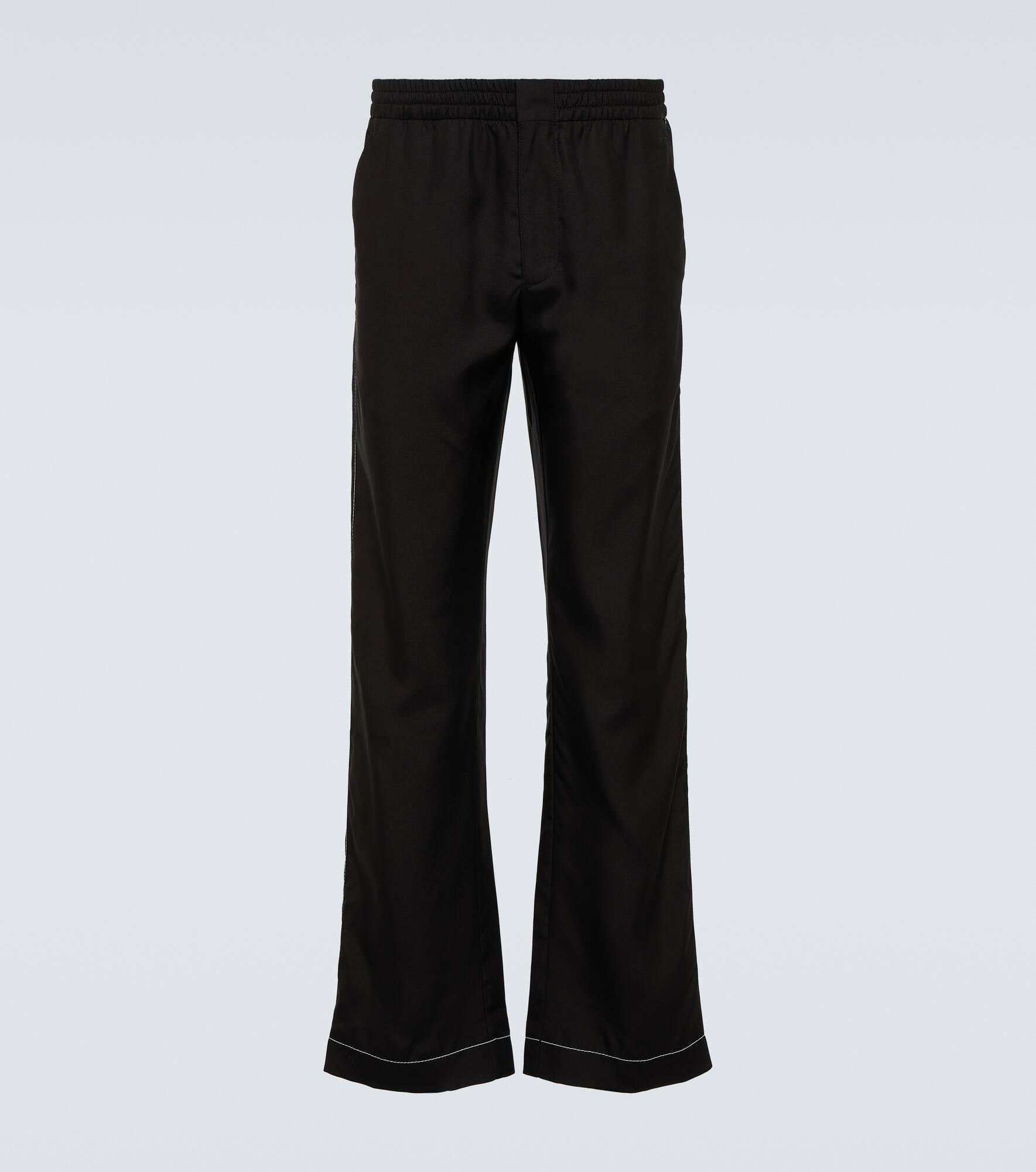 Product Details - Material: 100% silk - Care instructions: dry clean - Made in Italy - Designer color name: Nero - Pocket lining: 100% silk - Pockets: slant pockets, back pocket - Closure: zipper fly, button and hook fastenings - Elasticated drawstring waist - Item number: P00877906 Size & Fit - True to size - Elasticated waist - Adjustable at the waist - Non-stretchy fabric - Straight leg - The model in the picture is 185cm-6'1" and wearing a size M