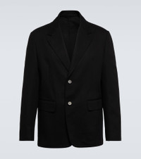 In black, this Prada blazer offers a single-breasted silhouette. It is crafted entirely from cotton and partially lined, with a two-button front fastening and peaked lapels. Product Details - Made in Italy - Contains non-textile parts of animal origin - Comes with garment bag - Designer color name: Black - Buttoned cuffs - Pockets: flap pockets - Lining: 100% cupro, partially lined - Closure: buttoned front - Care instructions: dry clean - Material: 100% cotton - Item number: P00633221 Size & Fit - True to size - Straight fit - Falls to the hip - The model in the picture is 185cm-6'1" and wearing a size IT 48
