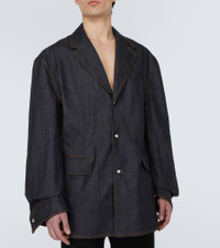 Product Details - Material: 100% cotton - Care instructions: dry clean - Made in Italy - Designer color name: Bleu - Contains non-textile parts of animal origin - Closure: single-breasted (three buttons) - Denim jacket - Jacket construction: structured - Pockets: flap pockets - Notched lapel - Buttoned cuffs - Item number: P00899865 Size & Fit - True to size - Dropped shoulders - Slim fit - Non-stretchy fabric - Falls below the hip - The model in the picture is 185cm-6'1" and wearing a size IT 48