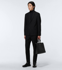 A runway piece, Prada's single-breasted suit is crafted of a luxury blend of mohair and wool. With its full, comfortable cupro lining, this black suit consists of straight-leg pants and offers a structured silhouette at the suit jacket. Product Details - Sleeve lining: 100% viscose - Designer color name: Nero - Pockets: breast pocket, side slit pockets, back pockets, flap pockets, internal pockets - Closure: zipper fly, button and hook fastenings, buttoned front - Buttoned cuffs - Lining: 100% cupro, partially lined - Belt loops - Pocket lining: 100% cotton - Material: 60% mohair, 40% wool - Item number: P00554205 Size & Fit - Fits small to size - we recommend trying one size larger - Slim fit - Falls below the hip - The model in the picture is 185cm-6'1" and wearing a size IT 50