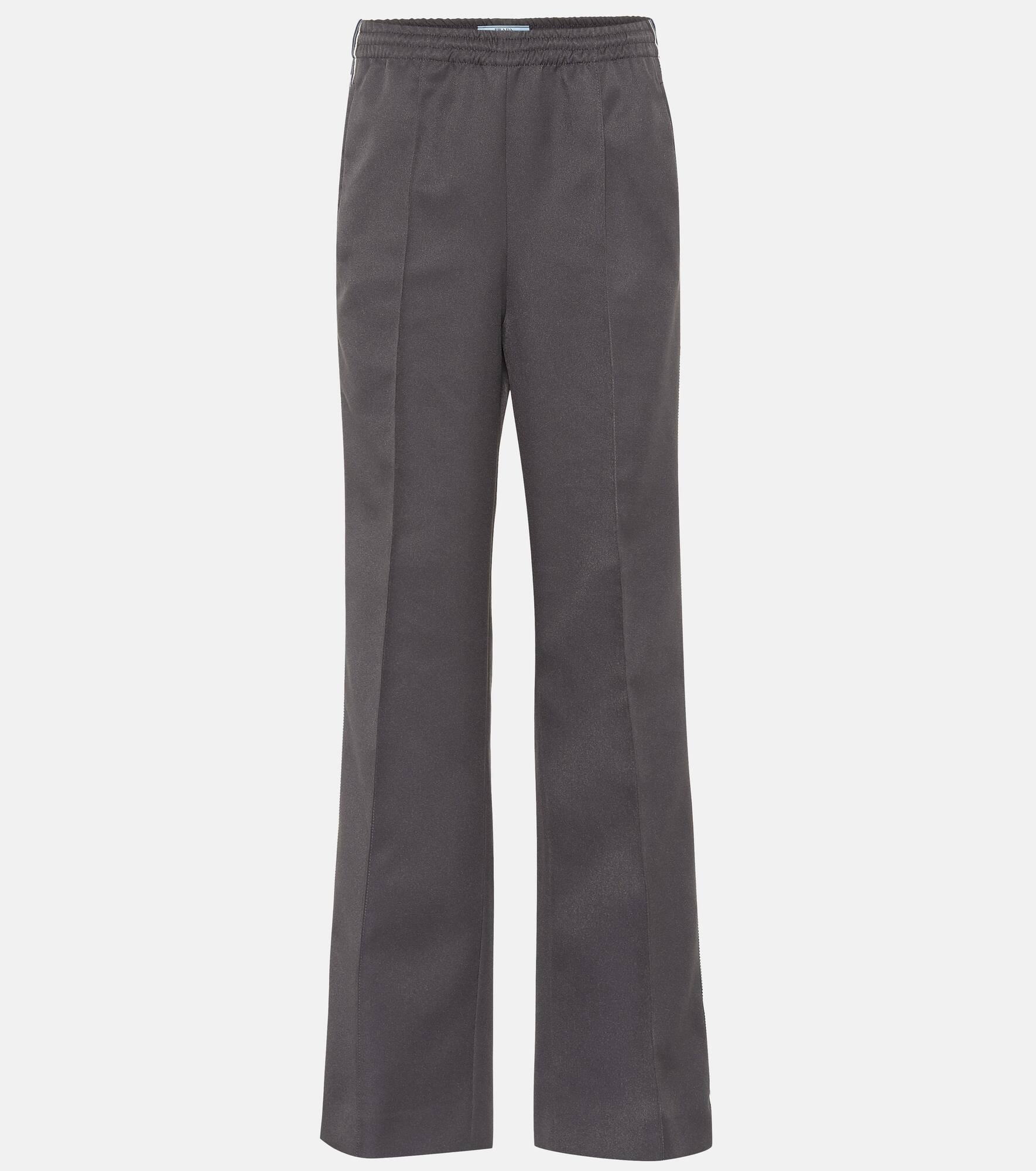 With a structured straight-leg silhouette that's just a little relaxed, these gray trackpants from Prada reflect the athleisure trend with an elevated dose of tailoring. A comfortable feel, easy fit, and low-key cool look temper this pair's smart attitude. Dress yours up or down with a T-shirt or luxe knit. Product Details - Material: 90% polyester, 10% cotton - Designer color name: Ematite - Pockets: side slit pockets - Elasticated waistband - Item number: P00335220 Size & Fit - Fits large to size - we recommend trying one size smaller - Wide-leg - The model seen in the picture is 178cm-5'10" and wearing a size IT 38
