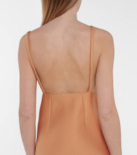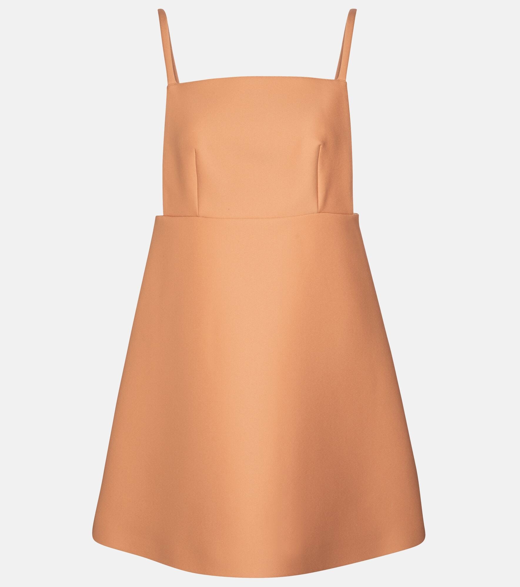 Miuccia Prada's eye for minimalist yet striking lines shines through in this peach-hued minidress. Made in Italy from structured cady, which incorporates wool and stretch fibres for added softness, it has an A-line silhouette with slender shoulder straps and a silk-blend lining that sits gently against the skin. Swing a Cleo bag next to yours. Product Details - Made in Italy - Material: 58% polyamide, 39% wool, 3% elastane - Closure: zipped side, hook fastening - Designer color name: Phard - Lining: 60% cupro, 40% silk, fully lined - Care instructions: dry clean - Item number: P00528231 Size & Fit - True to size - Low back - Designed for a loose fit - The model seen in the picture is 178cm-5'10" and wearing a size IT 40