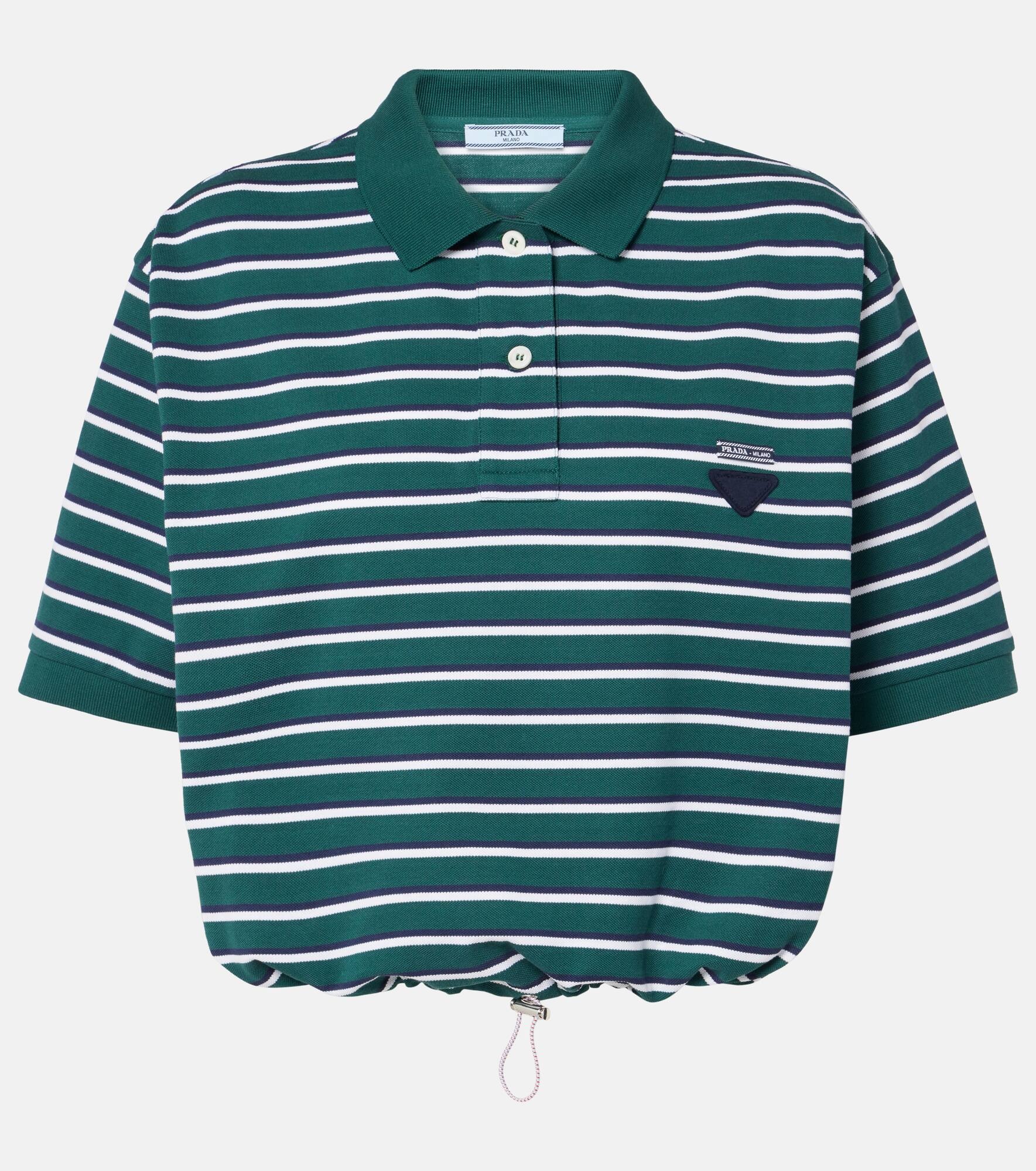 Striped cropped cotton polo shirt