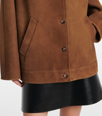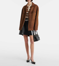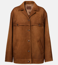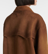 Prada's suede jacket is a piece to add to your forever wardrobe. It is made from exceptionally soft, vintage-treated leather and features a front button closure with a leather triangle logo on the back. Product Details - Care instructions: specialist clean - Made in Italy - Designer color name: Tabaco - Item color: brown - Lining: 100% viscose - Fully lined - Contains non-textile parts of animal origin - Closure: buttoned front - Pockets: jetted, internal pocket - Item number: P01057955