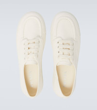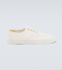 Crafted from supple suede, these sneakers from Prada feature a sleek, low-top silhouette with rounded toes. The design is complete with logo embroidered laces and rubber heel patches for a signature touch. Product Details - Upper: leather - Lining: leather - Sole: leather insole, rubber sole - Toe shape: round toe - Made in Italy - Includes: dust bag, shoe box - Designer color name: Avorio - Item color: white - Item number: P01008245 Size & Fit - True to size - Half sizes please take the next size down - UK sizes