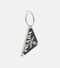 With the Symbole single earring from Prada, you can accessorize with the house's iconic logo in more ways than with bags and shoes. It's made from 925 sterling silver and black enamel, with a simple hoop fastening. Product Details - Closure: bar fastening - Material: silver - Made in Italy - For pierced ears - Single earring - Designer color name: Nero - Item number: P00596089 Size & Fit - Length 6cm-2.5" - Max. width 2,5cm-1"