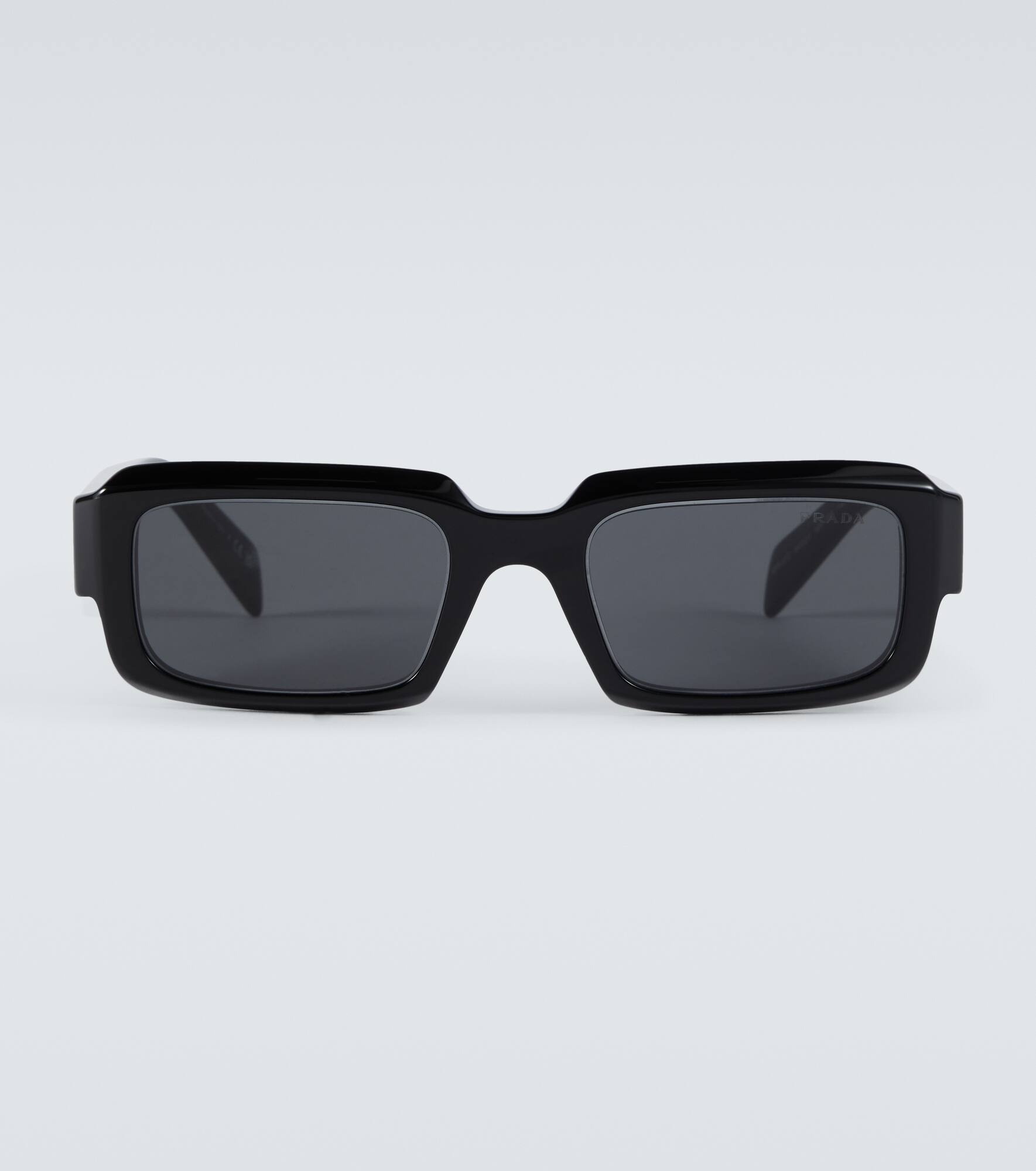 Prada's Symbole sunglasses spotlight the house's forward-thinking approach, with a rectangular frame that's made from a lightweight combination of layers of acetate. This style has 100% UVA/UVB protective lenses and geometric-molded logo plaque arms. Product Details - comes with a presentation box , comes with cleaning cloth, comes in a hard case - Frame material: acetate - Made in Italy - Frame color: black - Lens filter category 3 - Lens color: black - Designer color name: 0 - Item number: P00818558 Size & Fit - Lens width: 54mm-2.15" - Bridge size: 21mm-0.85" - Earpiece length: 145mm-5.7"