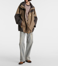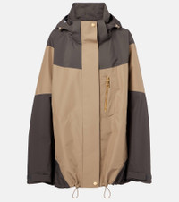 Function meets high fashion in this technical jacket by Prada. Featuring large zipper side pockets, a chest pocket, and velcro cuffs, this is an adventure-ready style that's just as well suited to the wilderness as it is to the city streets. Product Details - Material: 59% polyester, 41% nylon - Care instructions: dry clean - Made in Italy - Designer color name: Argilla + Ferro - Item color: brown - Closure: zipper, snap-button fastenings - Pockets: utility chest pocket - Drawstring hood - Elasticated drawstring waist - Item number: P01057755 Size & Fit - True to size - Extra-long sleeves - Dropped shoulders - Oversized - Non-stretchy fabric - Falls below the hip - The model seen in the picture is 178cm-5'10" and wearing a size IT 40