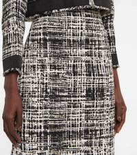 Prada's tweed midi skirt is an investment that will never go out of style. It's made from cotton and linen, and features contrasting Re-Nylon trims at the hem. Product Details - Material: 70% cotton, 30% linen - Trim: 100% polyamide (recycled) - Lining: 100% cotton, fully lined - Designer color name: Avorio+Nero - Made in Italy - Closure: zipper, hook fastening - Care instructions: dry clean - Item number: P00635354 Size & Fit - Fits large to size - we recommend trying one size smaller - slit length 39cm-15.5" - The model seen in the picture is 178cm-5'10" and wearing a size IT 38